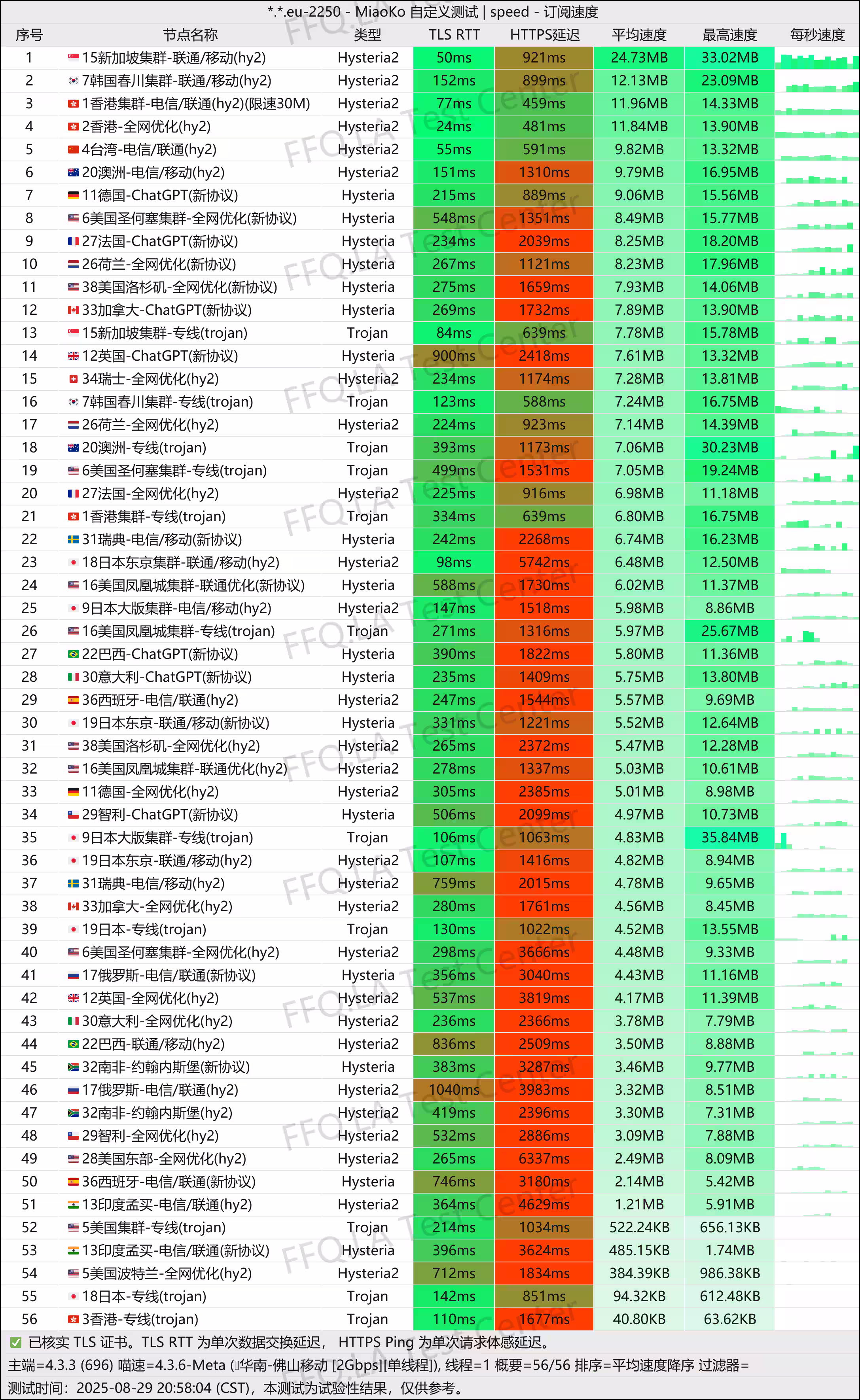 - 标注“专线”的节点,从延迟来看和专线完全不沾边,在中转里面都算差的,具体专线延迟可以参考本频道测试的其他专线机场。