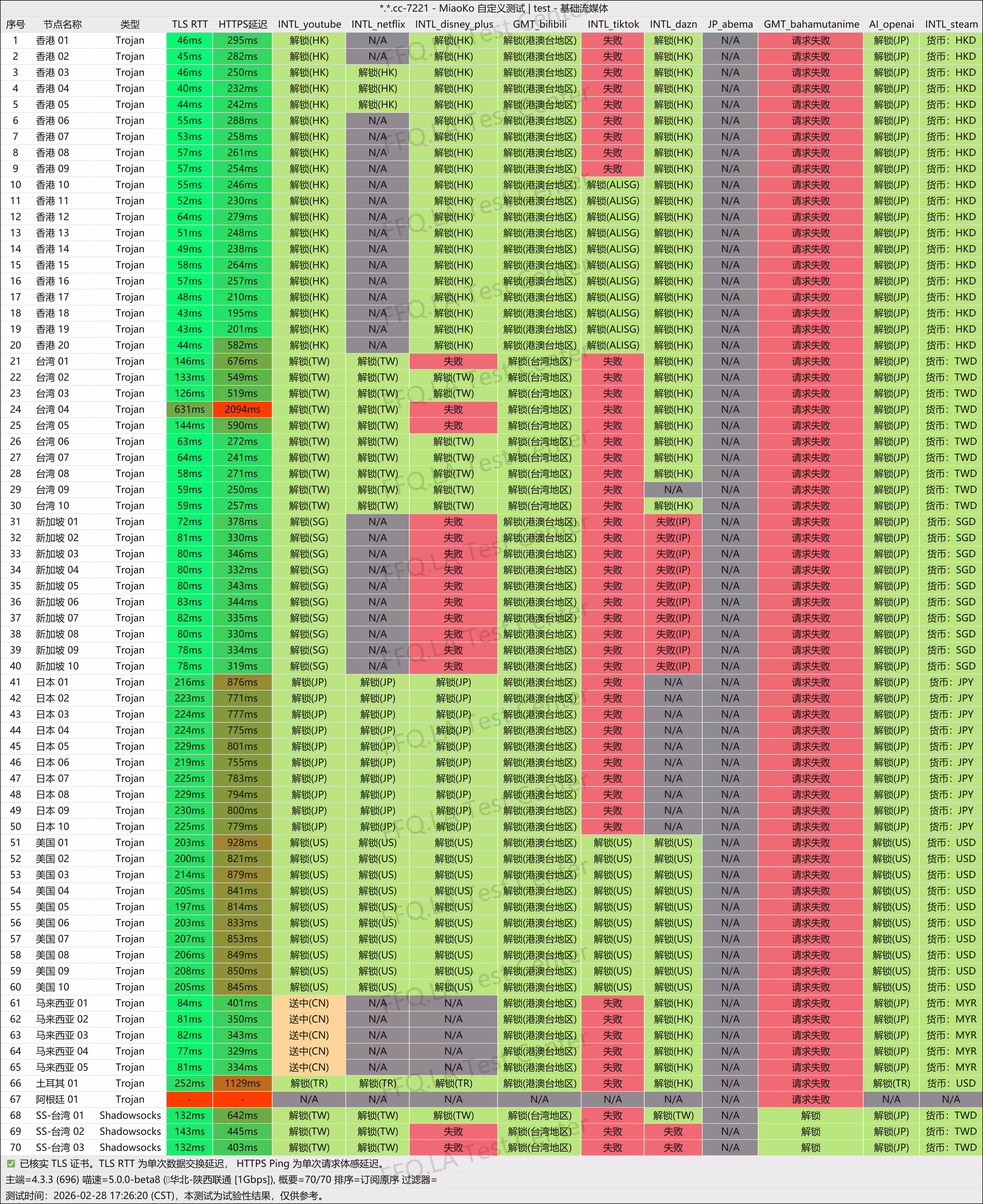 龙猫云2026年2月28日 测试结果(本次测试流媒体全绿,香港速度千兆跑满无压力,推荐购买)
